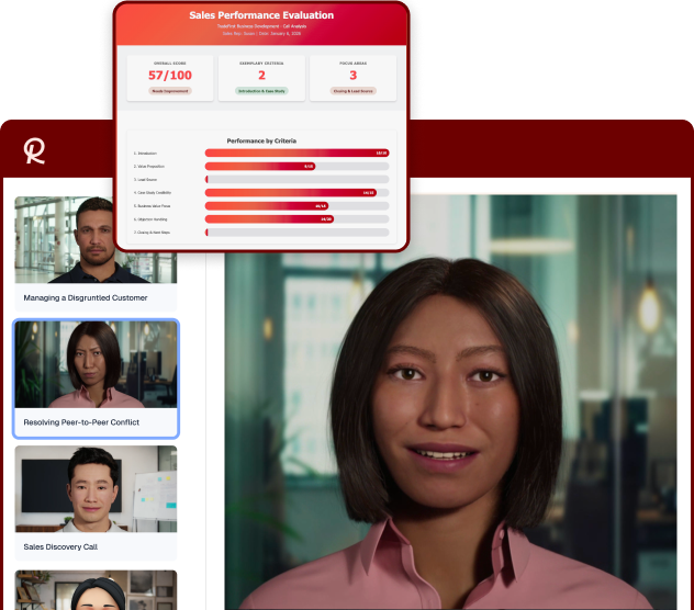 Start training in minutes with pre-built scenarios for sales objections, customer service, leadership conversations, compliance, and more.
